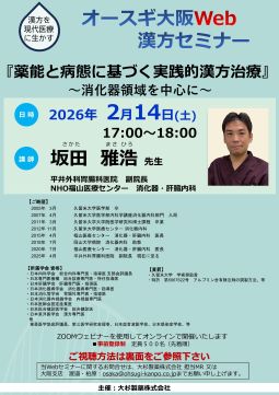 | 演題 : | 『薬能と病態に基づく実践的漢方治療』~消化器領域を中心に~ |