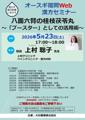 | 講師 : | 上村聡子先生(上村クリニック ペインクリニック・漢方内科 院長) |